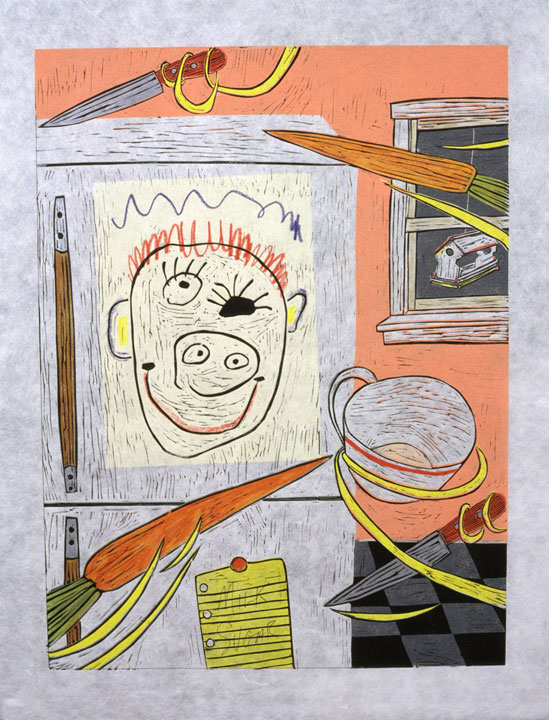 hand colored lino cut on Japanese paper