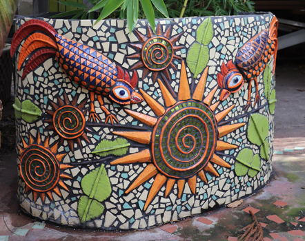 Marilyn's primary focus during the warm seasons has been creating outdoor mosaic sculpture.