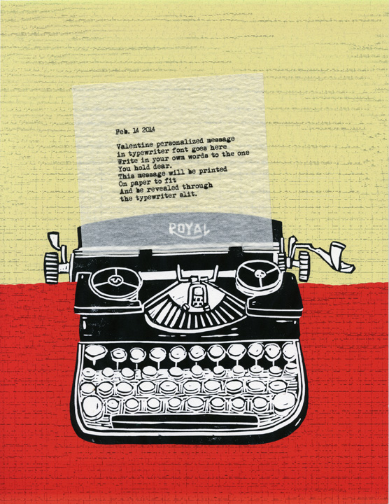 A slit is cut on the typewriter print where paper would feed through.