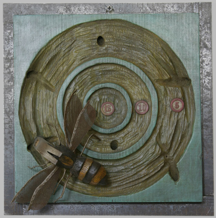 carved and painted wood, steel