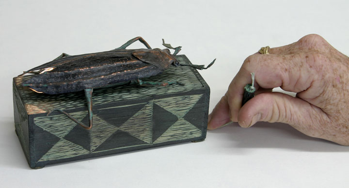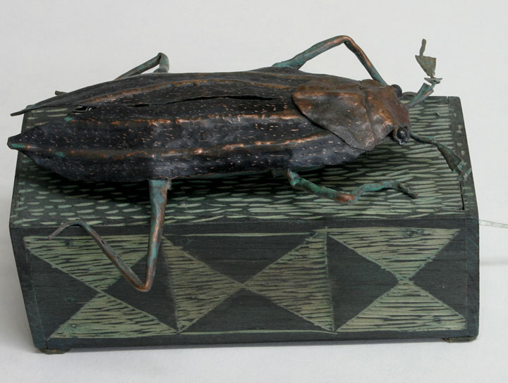 painted forged copper, wood, electric parts