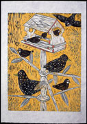 These sculptures and prints are representative of work Marilyn produced in the 1980's and 1990's. Themes range from feminist concerns to domestic violence and reflections on daily life.