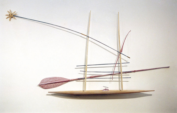 < Mapping Boat > 45" x 80" x 6" carved & painted poplar, string, metal